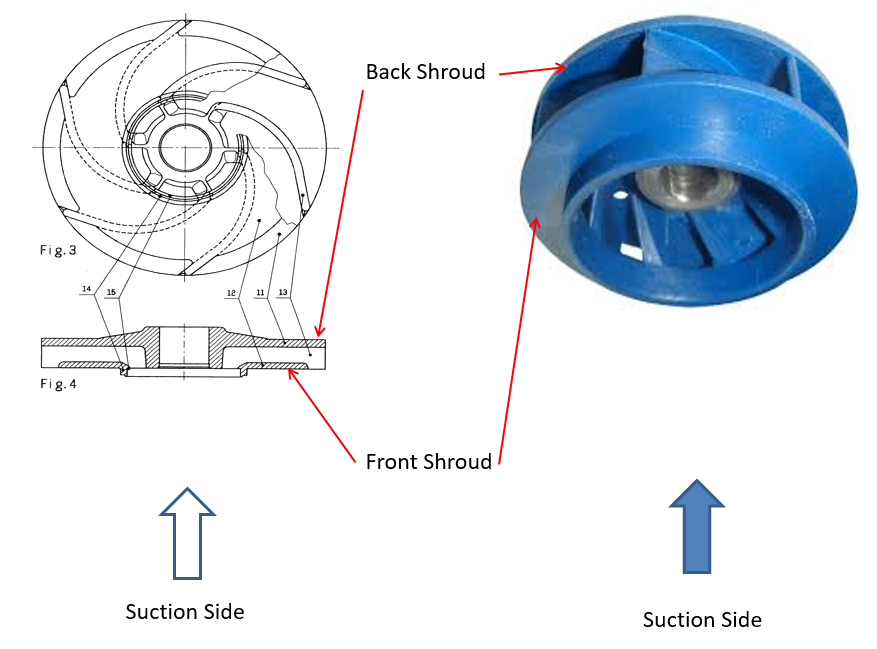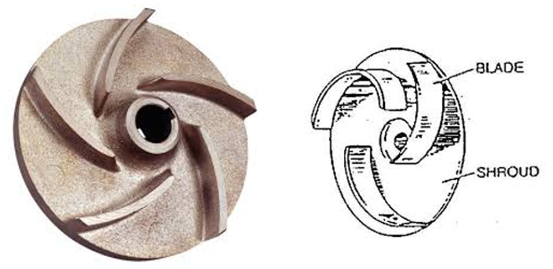 第一個(gè),可以說(shuō)是最堅(jiān)固的設(shè)計(jì)是封閉式葉輪。在這種設(shè)計(jì)中,液體沿著由葉片形成的通道沿路徑向下流動(dòng),并通過(guò)兩個(gè)護(hù)罩在頂部和底部(或根據(jù)軸方向的前后)“封閉”。下面的兩張圖片說(shuō)明了這種設(shè)計(jì)。