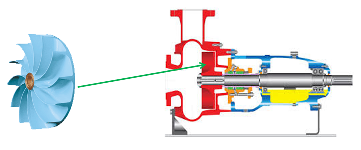 下圖很好地展示了葉輪,旁邊的剖面圖說(shuō)明了泵內(nèi)的葉輪位置